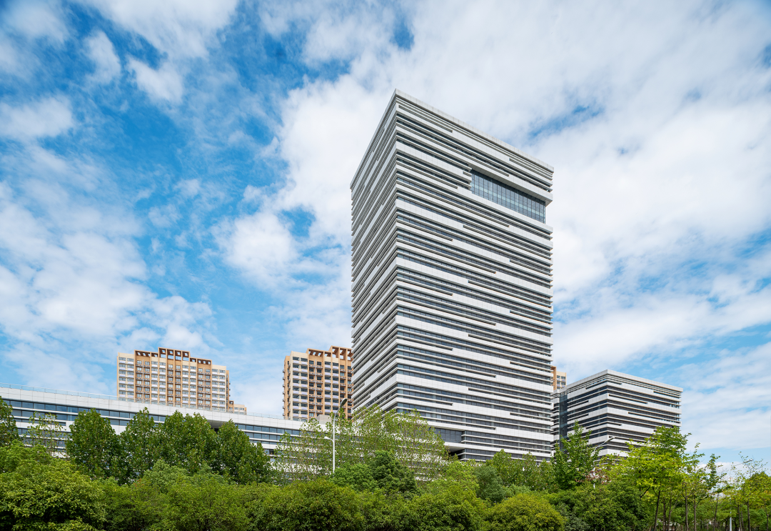 建筑采用現代風格,色彩以深灰、白色為主,暖色為輔,呼應周邊已建建筑。建筑立面形體,巧妙結合狹長地形,形體有機整體、一氣呵成。造型現代方正、穩重大氣,塑造“基業永恒”的發展信心。