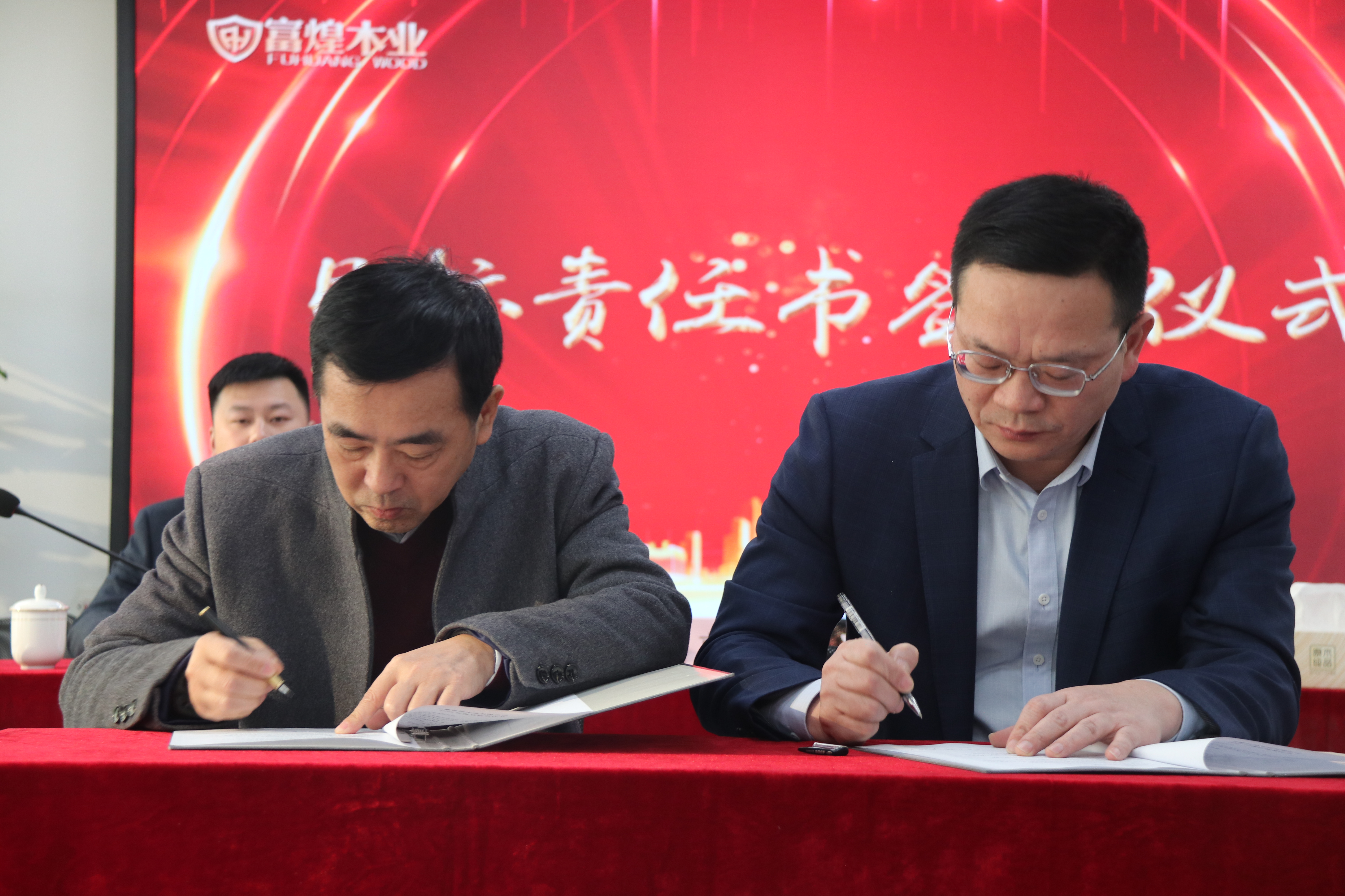 隨后胡浩然總經理與營銷、生產兩位分管負責人簽訂了2023年目標責任書,在公司負責人和出席會議的員工代表的共同見證下,營銷團隊舉行了莊嚴的宣誓儀式。