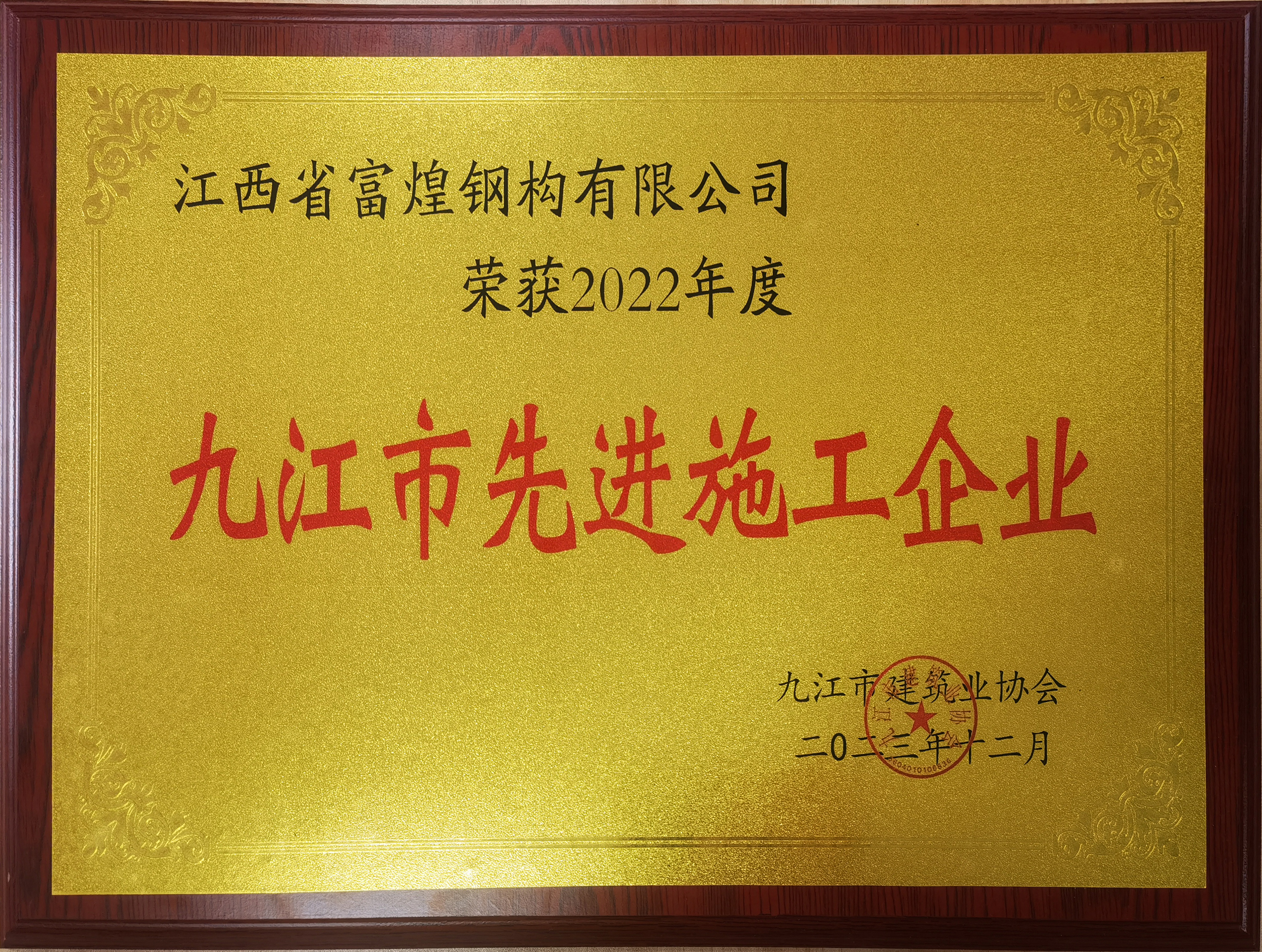 近日,九江市建筑業協會第三屆三次會員大會暨2023年度表彰大會在九江市遠洲大酒店隆重召開,會上宣讀了九江市建筑業協會字〔2023〕7號《關于表彰2022年度九江市建筑業先進企業、優秀會員、優秀企業家、優秀項目經理、優秀項目總監的決定》,江西省富煌鋼構有限公司憑借雄厚的綜合實力從九江市參評的百家建筑單位中脫穎而出,喜獲九江市2022年度建筑業“先進企業”榮譽稱號,董事長鄭茂榮獲評“優秀企業家”稱號,此外,張先得、王經順、汪濤當選“優秀項目經理”。江西富煌建工集團有限公司副總裁兼總工程師林海軍作代表上臺領獎。