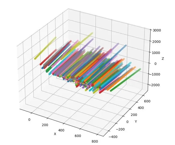 · 時空聚類:追蹤多幀圖像中的三維點位置構建三維軌跡,再按空間一致性與幀時間連續性對三維點進行分簇,合并距離接近、變化趨勢一致的點形成連續軌跡,刪除連續幀中出現次數小于閾值的“短軌跡”,以剔除不穩定或偶然出現的噪聲點,得到初步篩選后的有效三維軌跡集合。