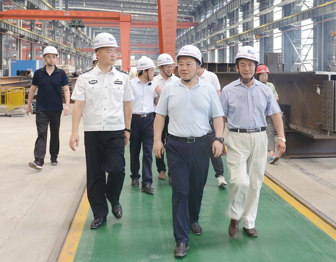 7月15日,安徽省委常委、合肥市委書記宋國權在巢湖市委書記耿延強,巢湖市委常委、常務副市長夏群山的陪同下蒞臨安徽富煌鋼構股份有限公司考察指導,富煌鋼構董事長楊俊斌全程陪同參觀。