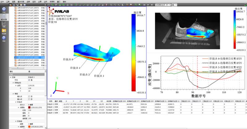 該系統為我司自主研發的重大技術裝備,利用高速攝像機對運動鞋在人體運動及外界環境沖擊過程中的形變過程進行圖像采集,運用高速圖像解析軟件對獲取的運動鞋形變圖像進行分析解算,得到運動鞋的整體或者局部材料形變結果數據,為運動鞋產品的研發提供圖像和數據分析支持。