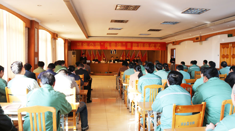活動伊始,25位師傅攜徒弟在掌聲中依次進場。秦學東宣讀了恒德公司《關于開展“師帶徒”活動的通知》文件以及首批25對“師帶徒”名單。眾目注視之下,徒弟們站在師傅面前,相互承諾為師徒關系,并向師傅敬茶。