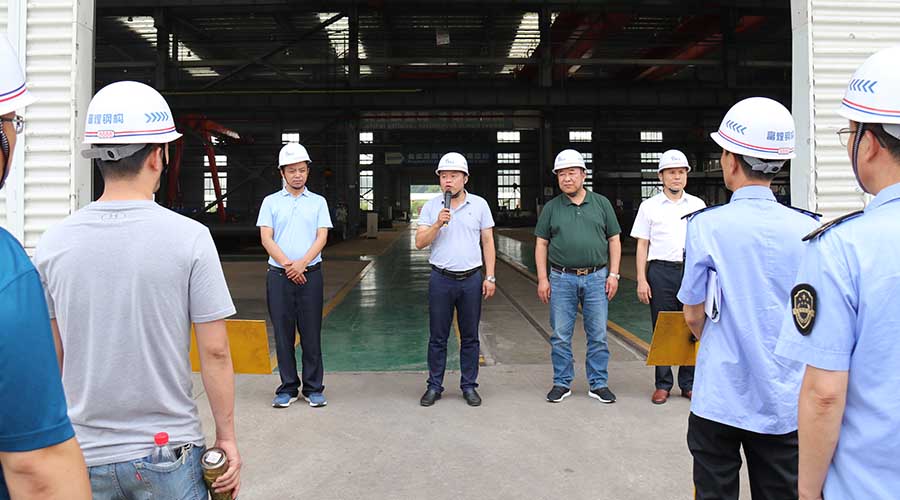 6月28日下午,安徽恒德智能制造有限公司在重鋼5#車間開展了起重機械事故應急預案演練活動。巢湖市市場監督管理局副局長袁晉、黃麓鎮副鎮長魏海山、安徽富煌鋼構股份有限公司副總裁曹玉林、安徽恒德智能制造有限公司總經理陳思勝等領導出席活動,巢湖市市場監督管理局有關科室和監管所負責人、恒德公司各車間主任、調度觀看了演練活動,安徽皖維集團有限責任公司 、華能巢湖發電有限責任公司、安徽省巢湖鑄造廠有限責任公司、中國人民解放軍第7410工廠、巢湖云海鎂業有限公司等9家企業代表前來觀摩活動。富煌鋼構總裁助理秦學東主持演練活動。
