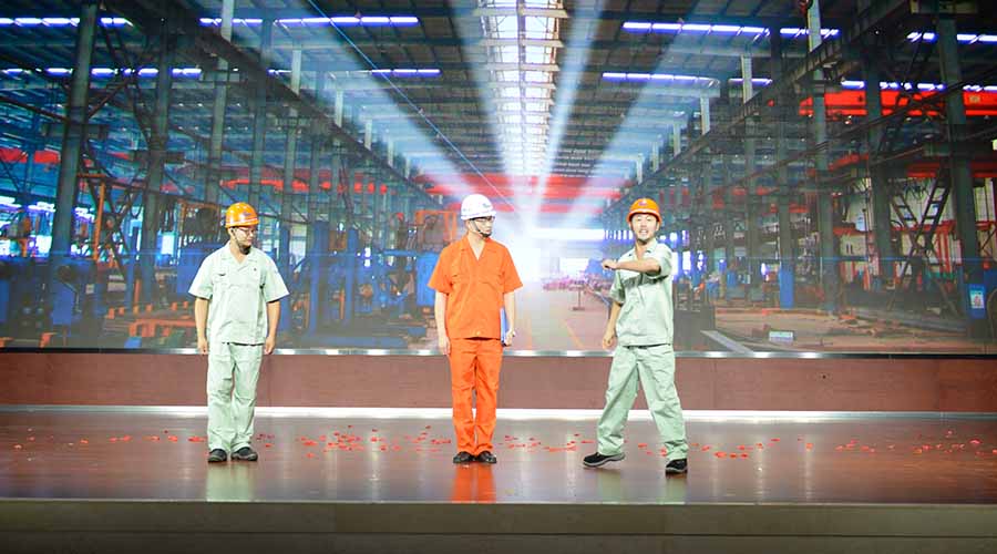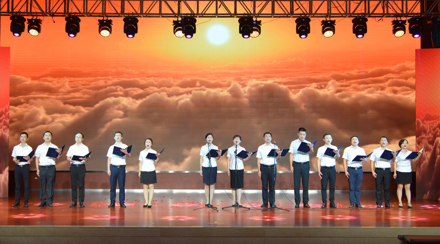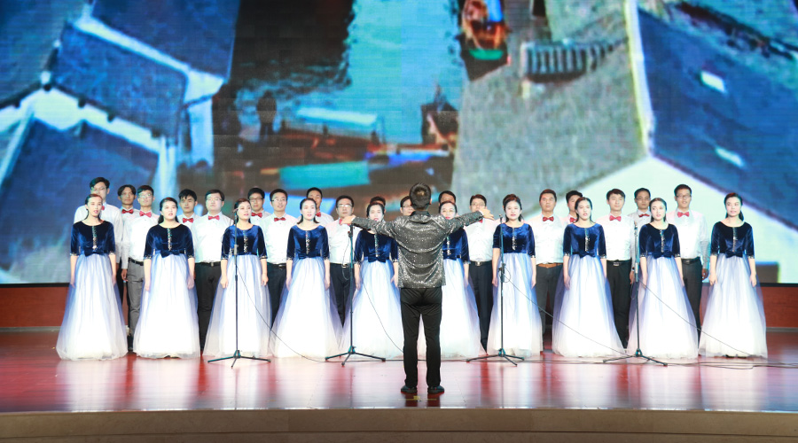 富煌鋼構董事長曹靖、富煌集團人力資源總監肖凌云等合唱的歌曲《把根留住》 富煌門窗幕墻公司選送的詩朗誦《富煌,我的家》