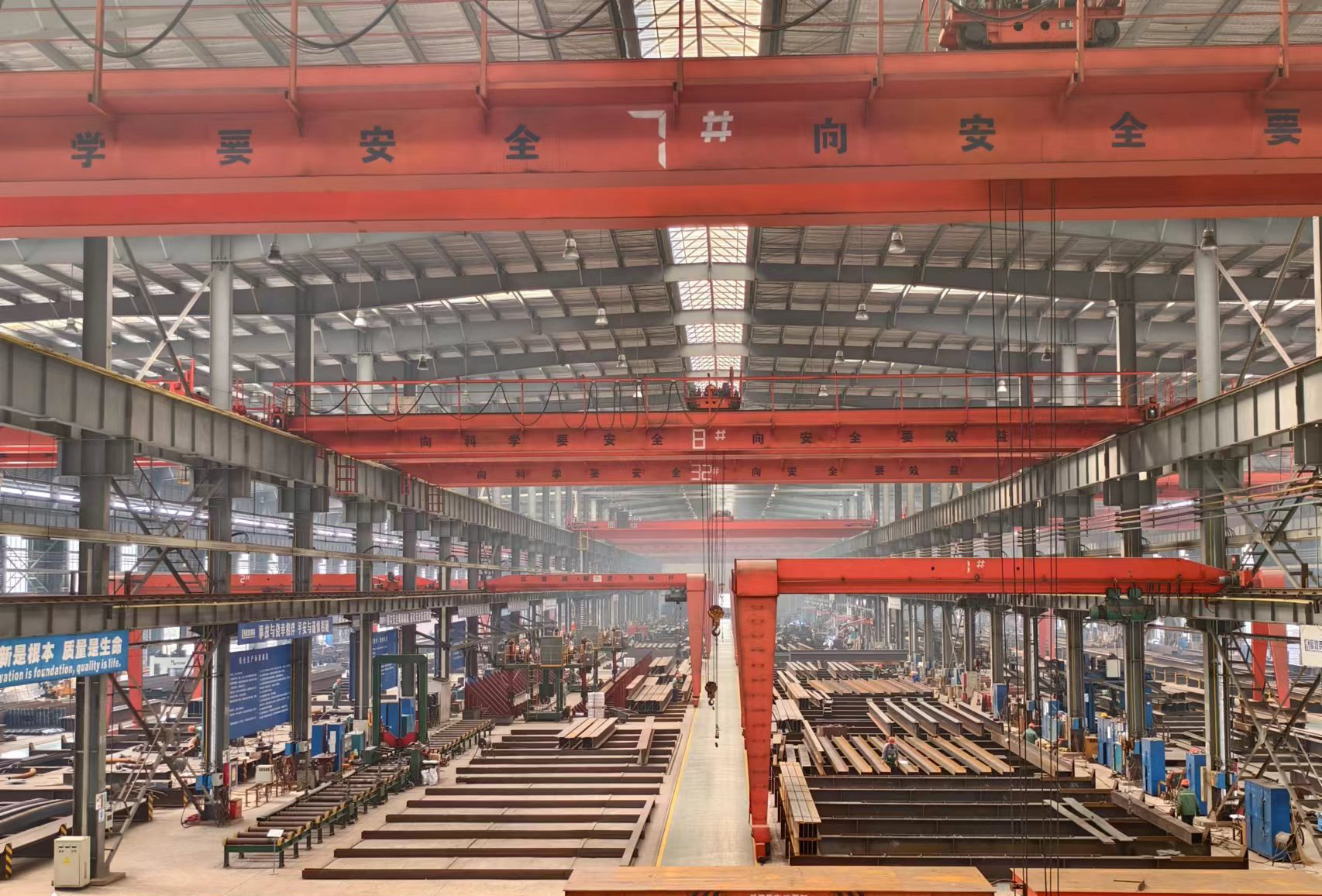 恒德公司重鋼4#車間于2012年12月啟動建設,2013年10月正式投入運營。該車間總建筑面積為22512平方米,設有三條重鋼生產線,并配備47臺行車設備,主要生產大型、異型構件。自投產以來,承接了多項大型建筑項目,如昆明滇池會展中心、昆明西山萬達廣場、徐州蘇寧廣場、甲湖灣電廠等。這些工程得到了公司領導、業主和監理單位的高度評價,多個項目榮獲“中國建筑鋼結構金獎”、 “國家優質工程”、 “魯班獎”、 “詹天佑獎”等殊榮。